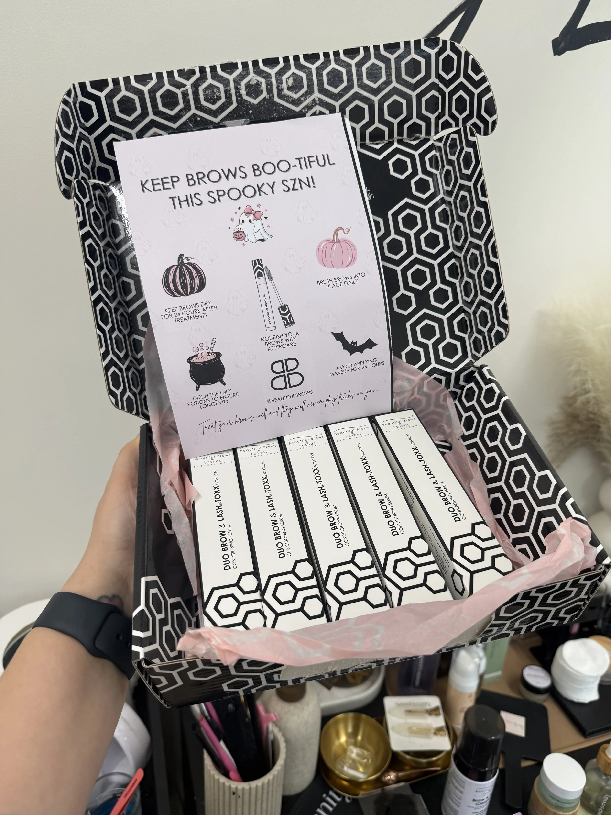 In the treatment room we have lash & brow serum available to purchase. It is advised to use lash & brow serum daily after a lash or brow service, especially a Lash lift or brow lamination.